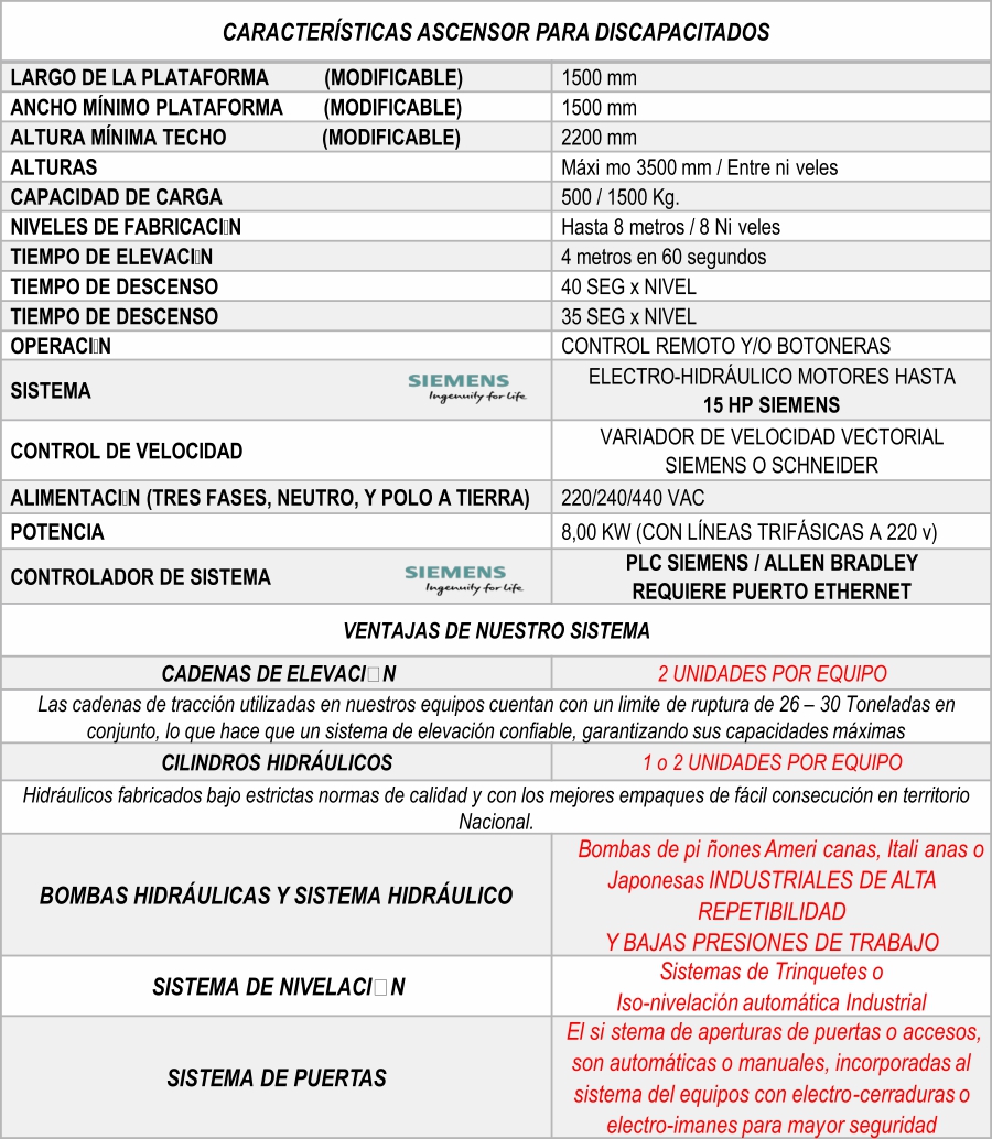 Es un sistema cómodo y seguro, brinda protección a personas con limitaciones físicas o en silla de ruedas, ideal para el aprovechamiento de espacios verticales en edificios e industrias.