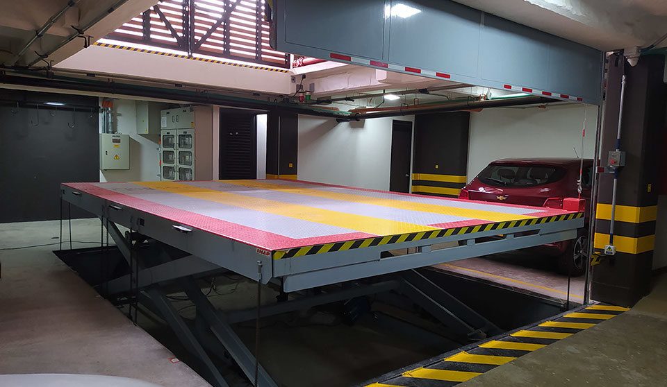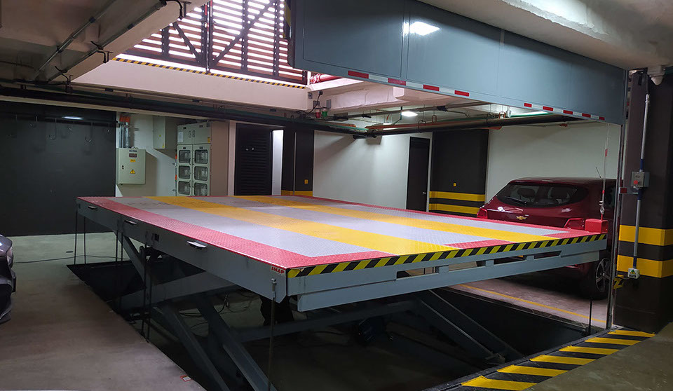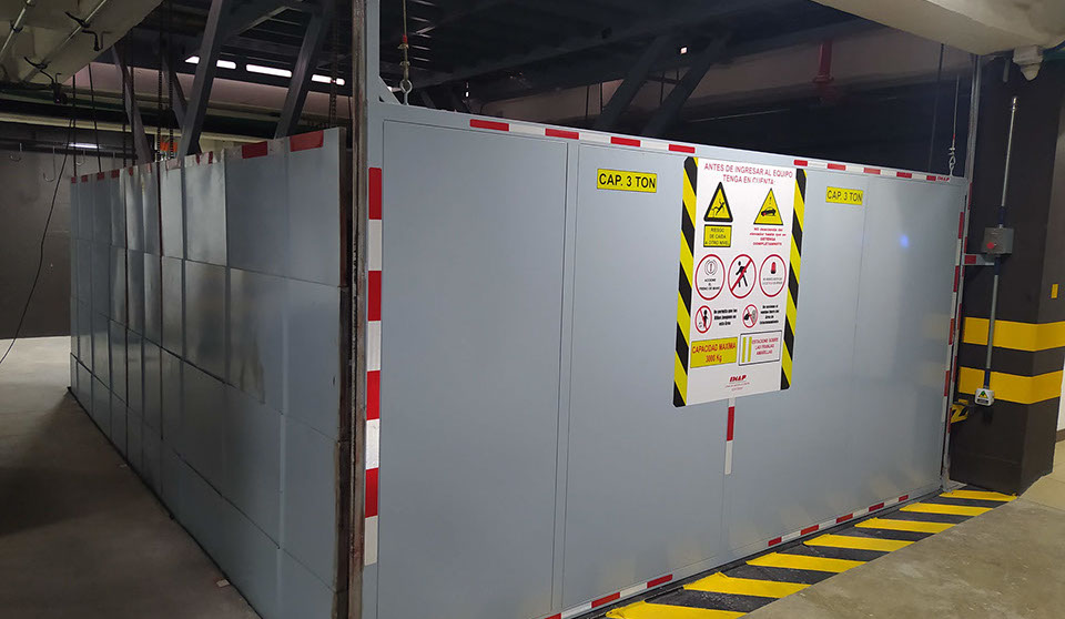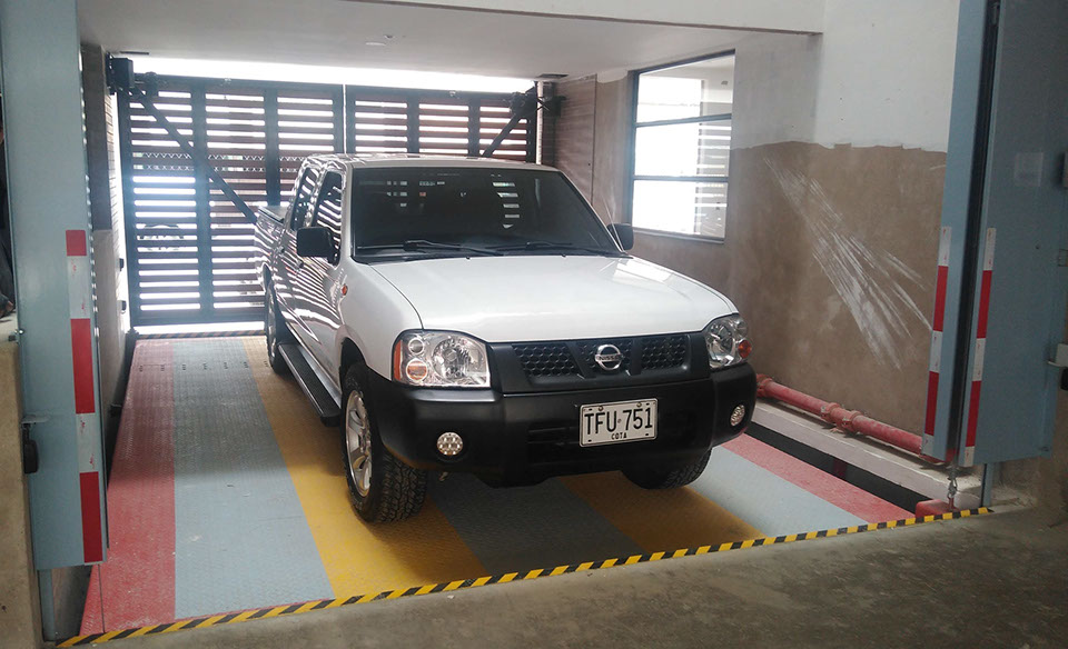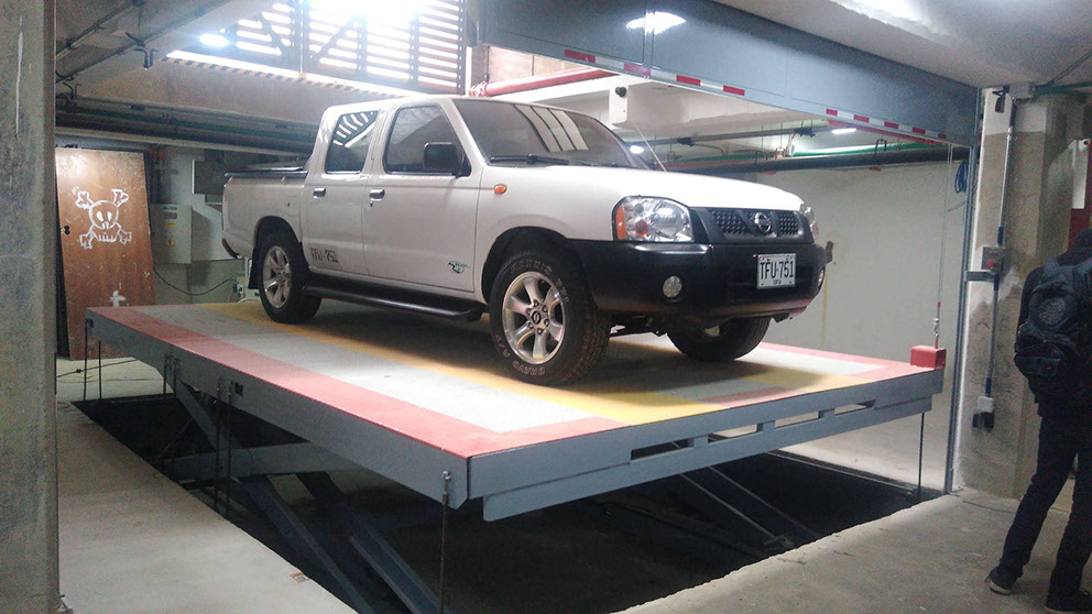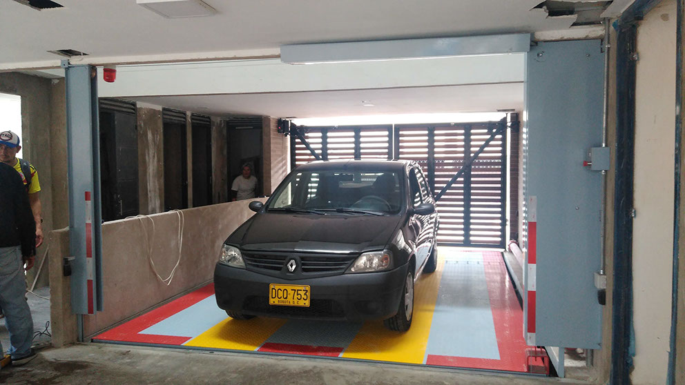 Es un sistema Moderno, más usado en edificios para acceder a diferentes niveles de estacionamiento, evitando así usar rampas de acceso en concreto que ocupan más espacio y generan altos costos de construcción