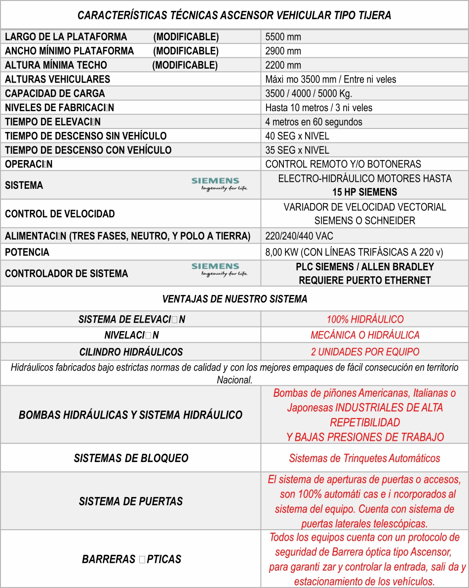 Ascensor Vehicular Tipo Tijera