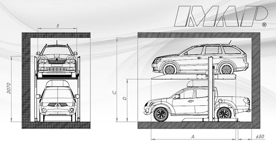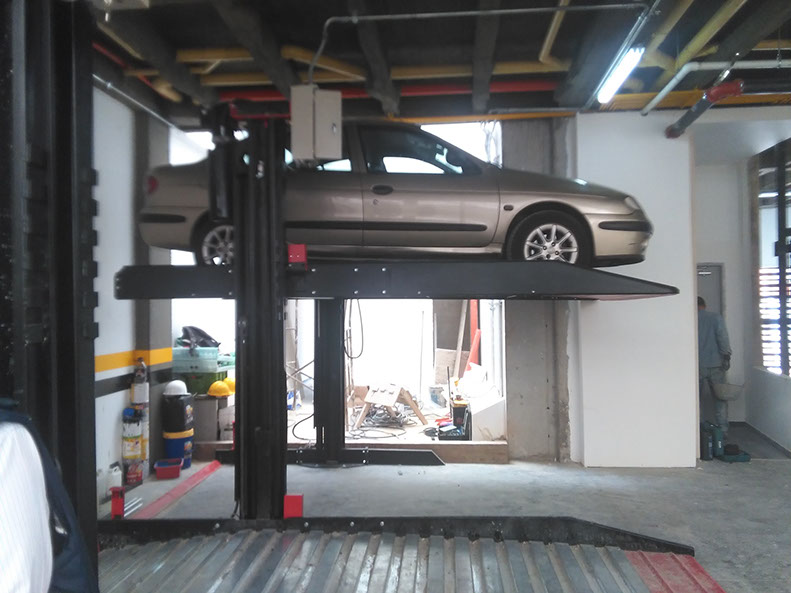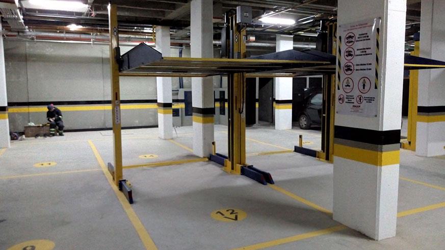 Es una máquina diseñada para duplicar su espacio de estacionamiento utilizado en edificios para oficinas y vivienda.